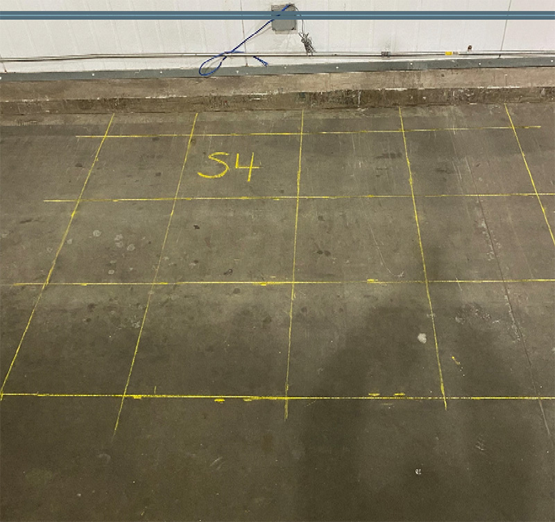 - Following the scan image, the location of the target cable or rebar is marked on the slab surface.